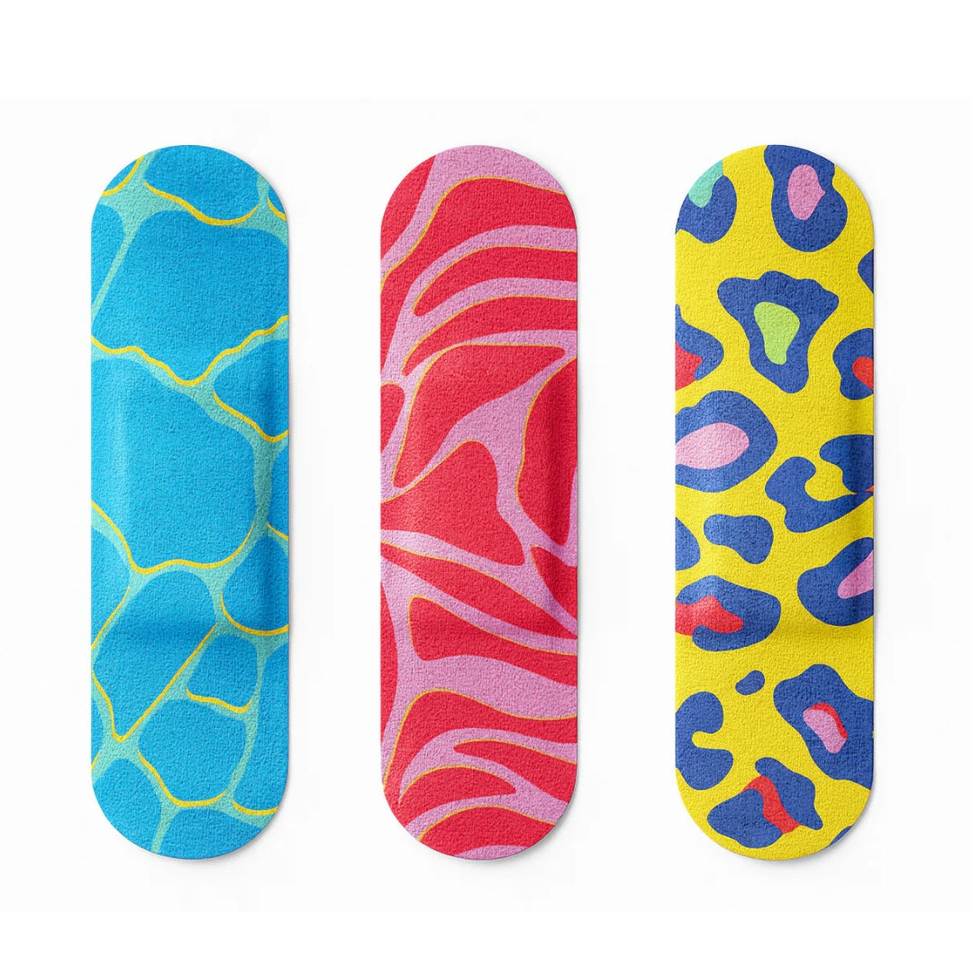 - 30 count flex fabric bandages that stay on through play time